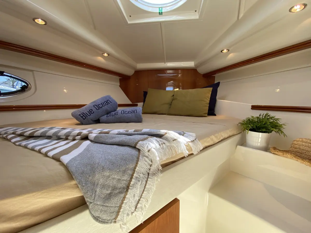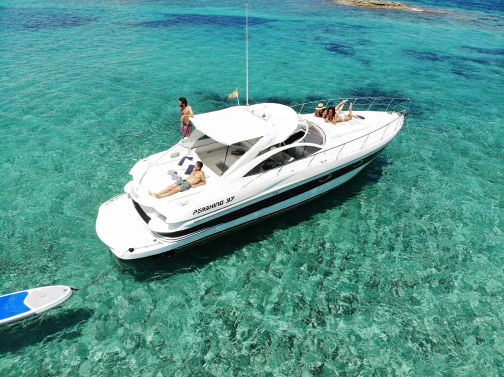 The Pershing 37 is the ideal yacht for those seeking to combine comfort, style, and power in one package. With its sporty lines and high-performance Caterpillar engines, this 11.45-meter vessel is perfect for cruising the crystal-clear waters of Ibiza, enjoying a sunny day, and discovering the coast with total freedom. Live the luxury and adventure experience aboard this impressive yacht.
