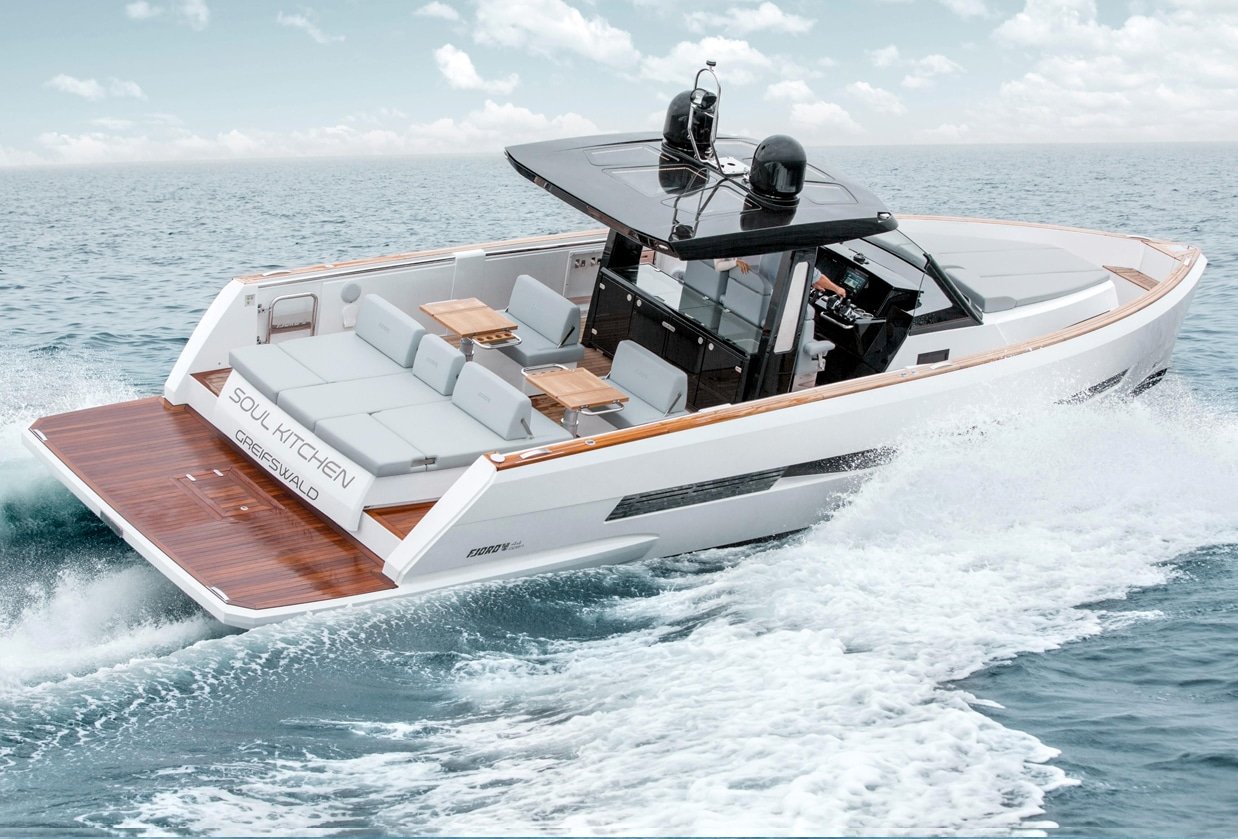 El astillero FJord nació en noruega en los años 50 pero desde 2007 forma parte de los yates que han revolucionado la gama con productos de vanguardia como el flor del 44 este es uno de los barcos que han dado lugar a un nuevo yate modelo basado en líneas externas innovadoras simples pero cautivadoras en una cubierta práctica de usar y un espacio muy aireado.