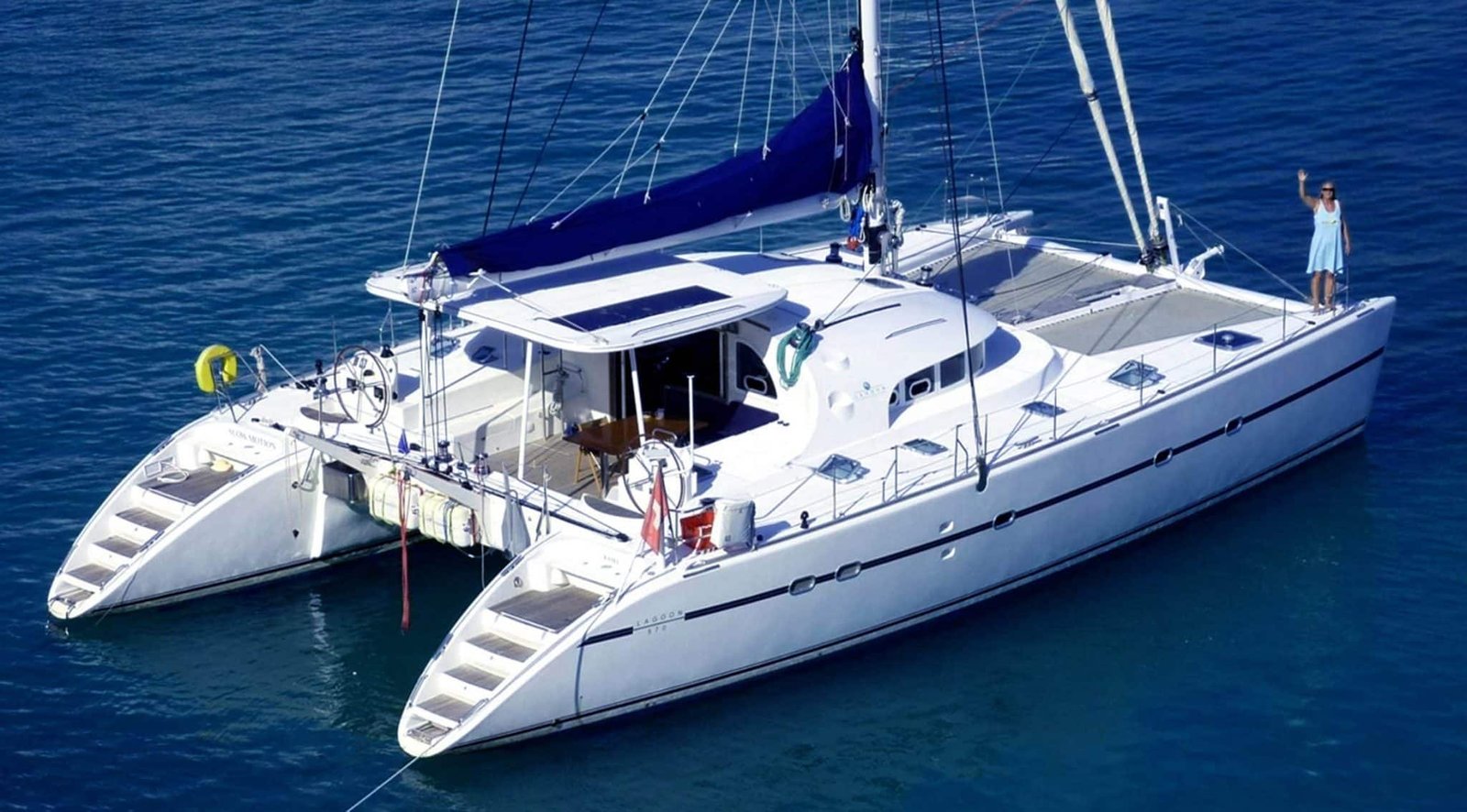 El Catamarán Lagoon 570 ofrece todo lo necesario para su confort hasta 6/7 huéspedes en 3 elegantes camarotes dobles con su baño en suite, además una cama single, un salón convertible. Cuenta con un amplio salón exterior y gran red en proa para relajarse. Con wifi, tv32 y aire acondicionado.