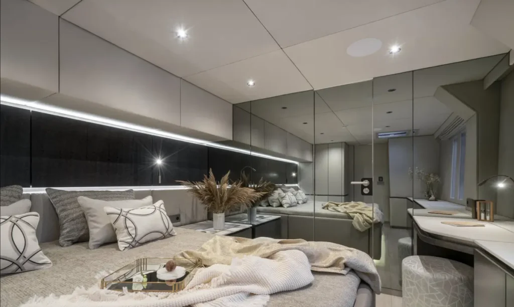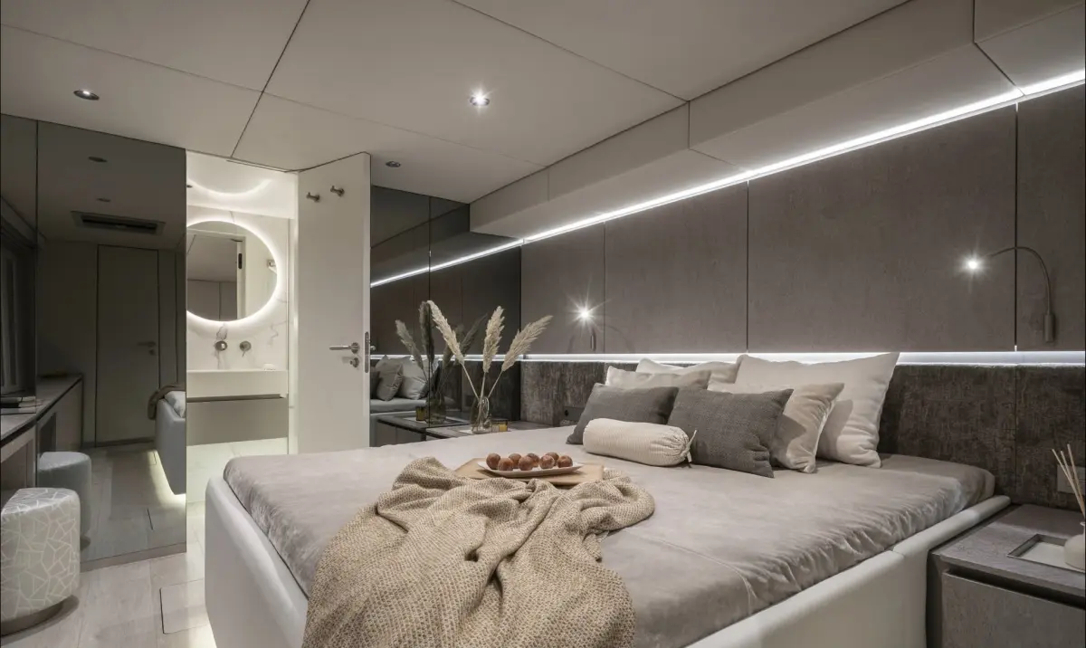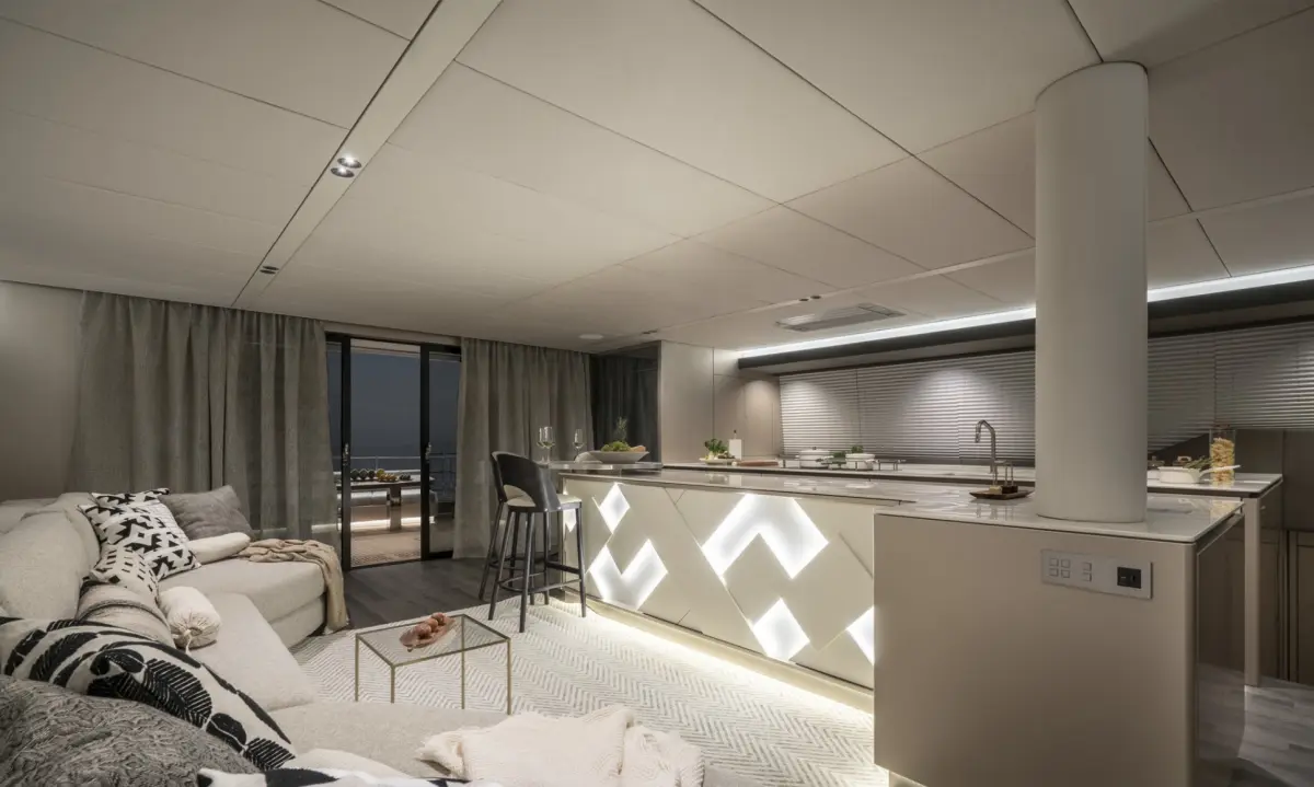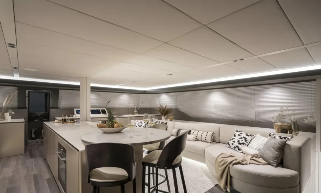 El Sunreef 70 ofrece una cubierta espaciosa con varias zonas de relax, incluida una terraza en la cubierta superior (flybridge), dos amplios soláriums y una gran plataforma de baño para facilitar el acceso al agua. En el interior, este catamarán cuenta con cuatro camarotes dobles en suite, un salón panorámico y una cocina gourmet. Ideal para cruceros de varios días, el Sunreef 70 garantiza una experiencia única, combinando lujo y comodidad en cada detalle.