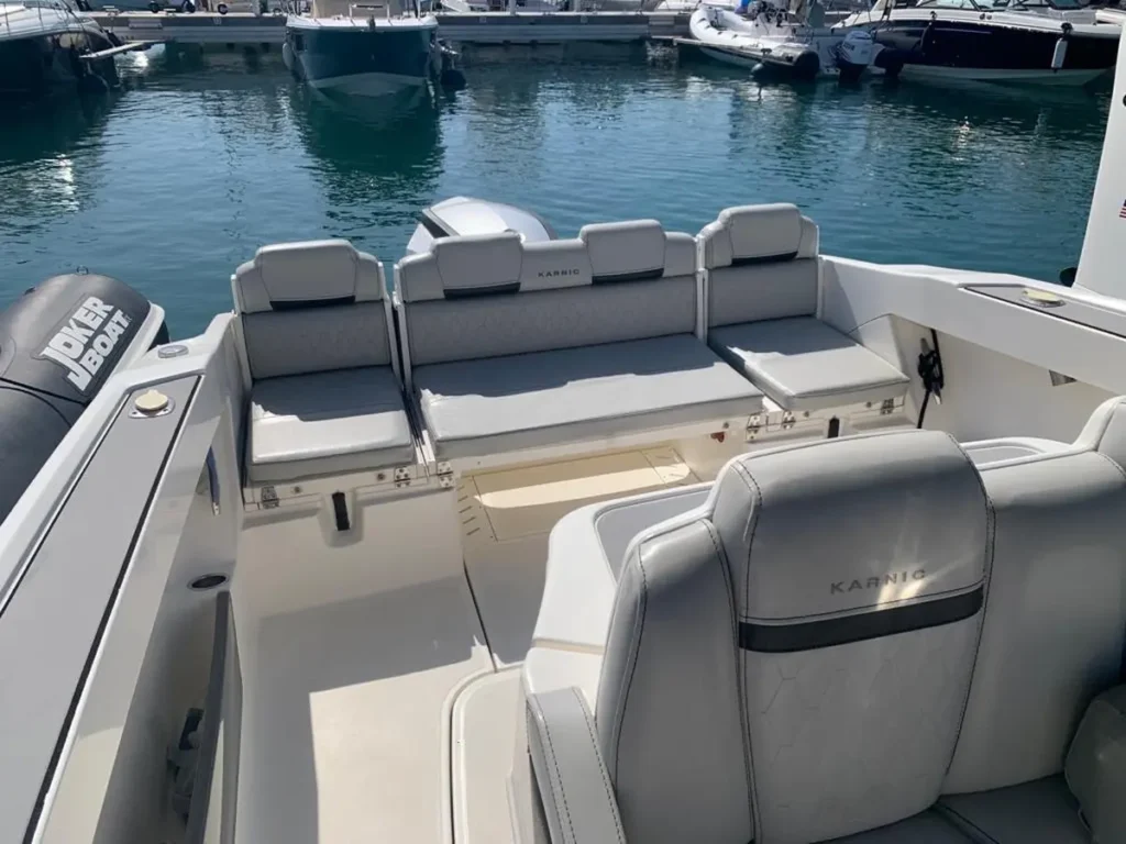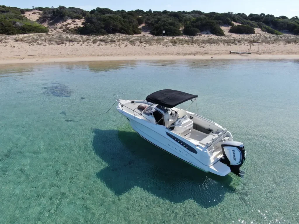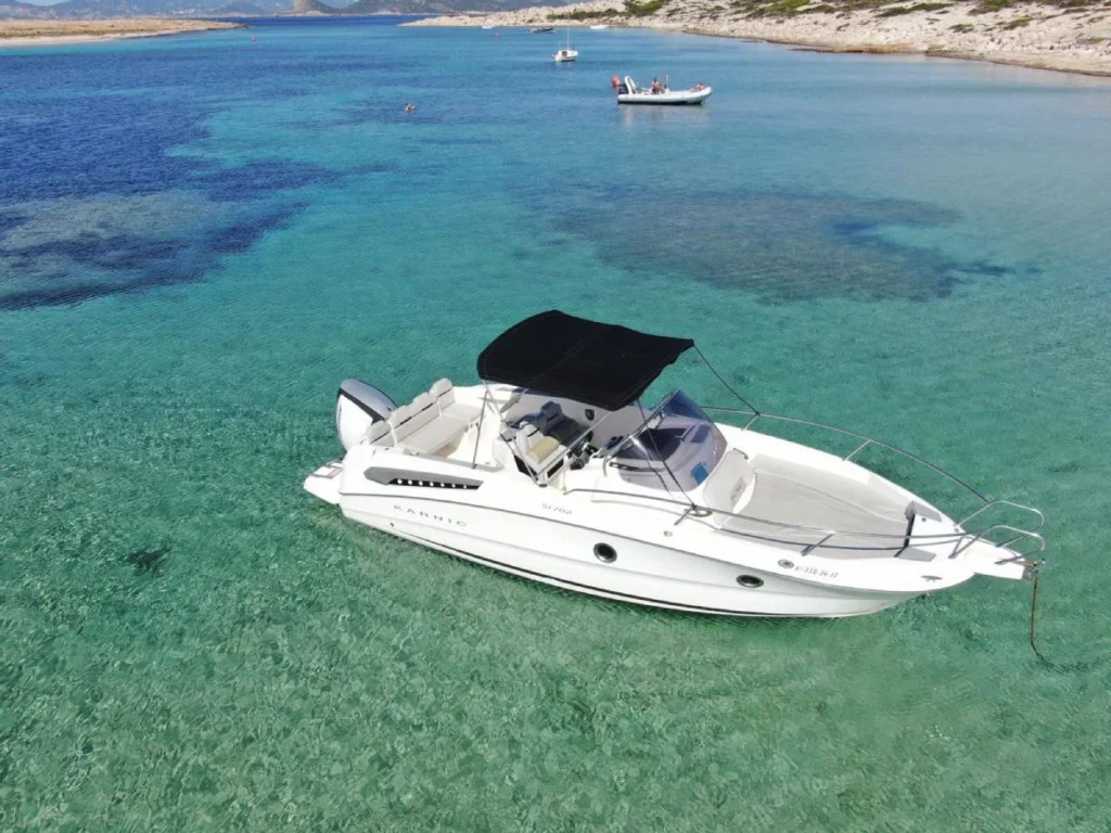 La Karnic 702 es una embarcación versátil y funcional, perfecta para quienes desean explorar las aguas cristalinas de Ibiza y Formentera con total comodidad. Con 7 metros de eslora y una capacidad para 8 personas, este modelo se adapta a grupos pequeños o familias que buscan una navegación segura y relajada.