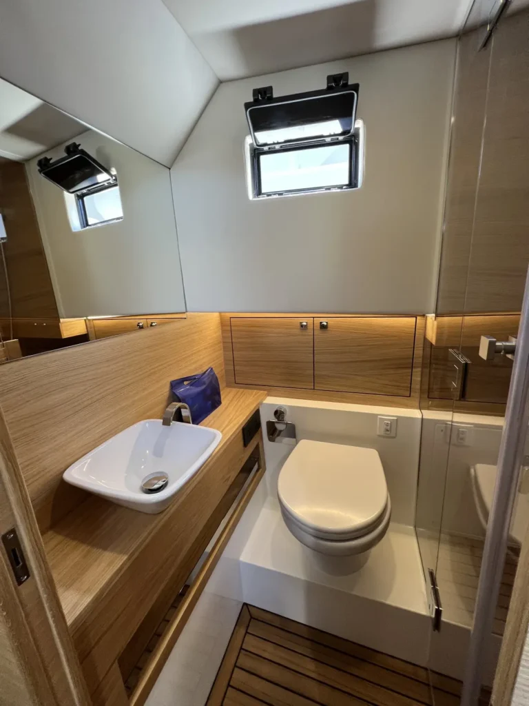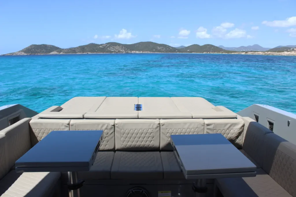 En el interior, el D42 ofrece una cabina equipada con cama doble, baño completo y una cocina adicional, lo que lo convierte en una opción ideal para pernoctar y disfrutar de largas jornadas de navegación. Su potente motorización asegura un rendimiento excepcional, perfecto para explorar las costas de Ibiza y Formentera a toda velocidad.
