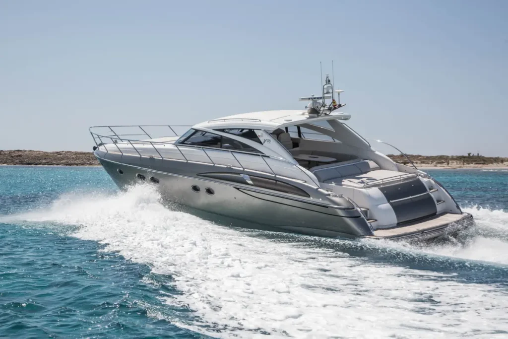 El Princess V58 es un yate deportivo de lujo que combina potencia, elegancia y espacio a bordo. Con 18 metros de eslora y capacidad para 11 pasajeros más el capitán, es una excelente opción para largas jornadas de navegación o para estancias de varios días en el Mediterráneo.