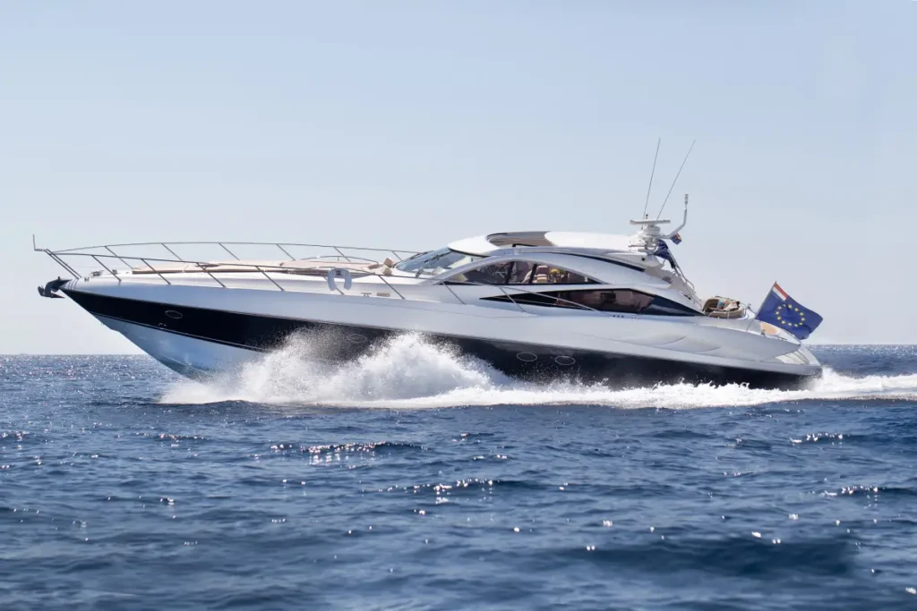 El Sunseeker Predator 68 es una embarcación de lujo deportiva y sofisticada, con 21 metros de eslora y capacidad para 10 pasajeros más la tripulación (capitán y marinero). Este modelo destaca por su rendimiento y su diseño aerodinámico, ideal para quienes desean recorrer las calas de Ibiza con rapidez y estilo.