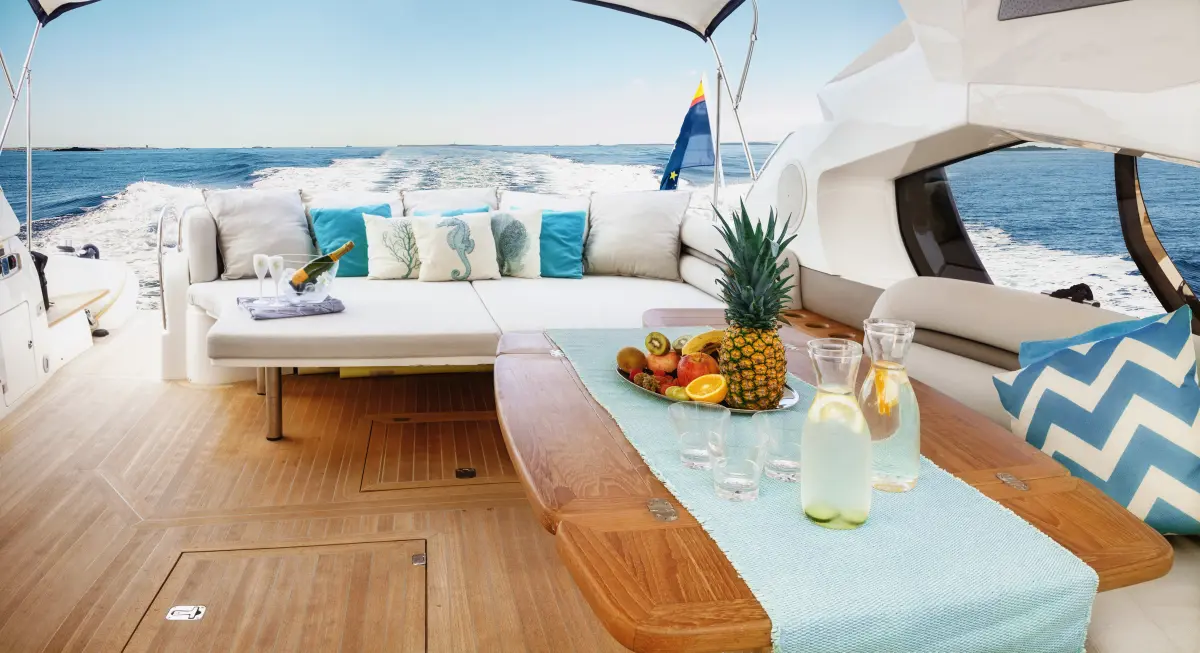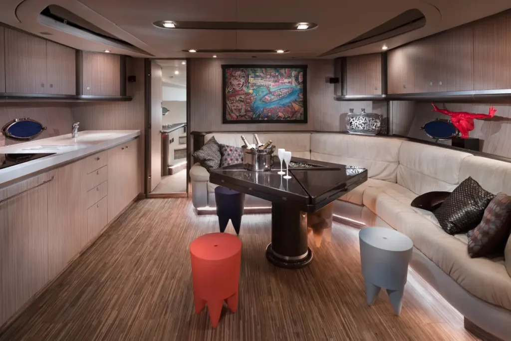 La cubierta está diseñada para el máximo confort, con grandes soláriums en proa y popa, una elegante zona de comedor y una plataforma de baño hidráulica para disfrutar de los chapuzones en las aguas cristalinas de Formentera. En el interior, el Sunseeker Predator 68 cuenta con tres camarotes dobles con baño privado, un amplio salón y una cocina completamente equipada, lo que lo convierte en una opción excelente para escapadas de varios días.