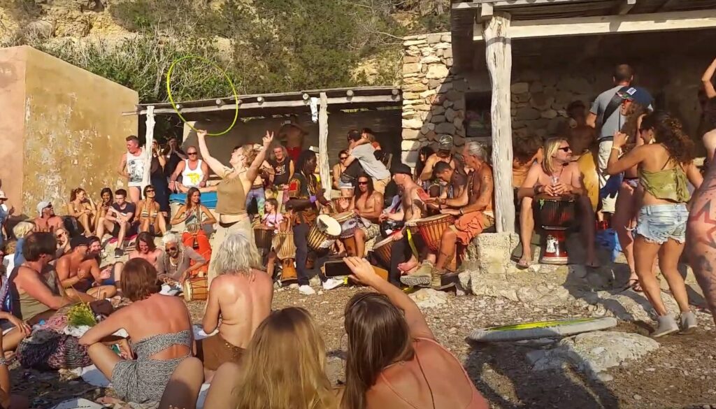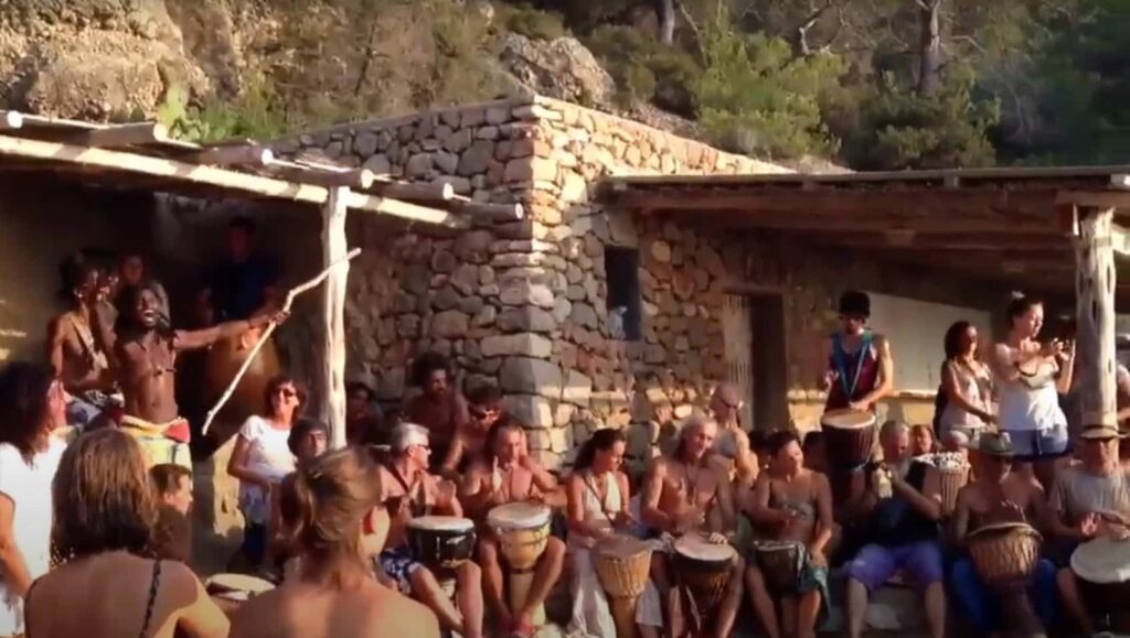 Ya te hemos dicho que el paisaje de esta cala española es encantador, pero lo que la ha convertido en uno de los puntos más populares de Ibiza, es su sensacional fiesta de tambores.