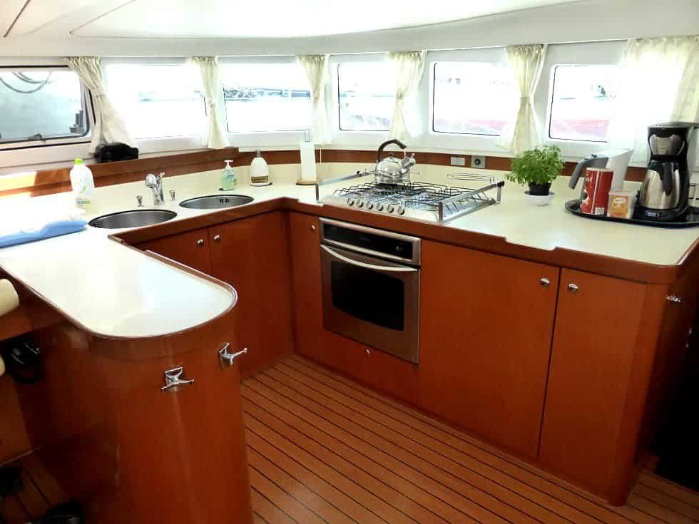 The Catamaran Lagoon 570 offers everything you need for your comfort and autonomy. Comfortable and spacious, designed in proprietary configuration which added a large bathroom in the main cabin. It has a hydraulic ramp for easy access. It also has a large net at the bow to relax and toys like a surf paddle and 4G internet.